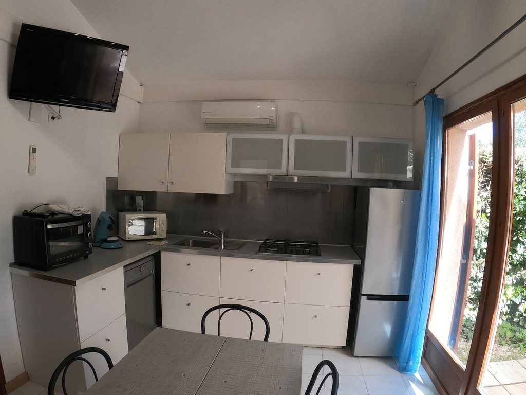 D’une pièce principale comprenant une cuisine équipée, une plaque de cuisson 4 feux gaz, un lave vaisselle, un réfrigérateur avec compartiment congélateur, un four micro-ondes, un four traditionnel, un autocuiseur, une cafetière expresso « Senséo », un grille pain, des ustensiles de cuisine et de vaisselle pour 10 personnes, une table, 5 chaises, un clic-clac pour deux personnes 140x200 cm, des oreillers, des couvertures et un téléviseur écran plat.