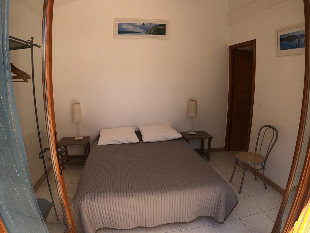 D’une chambre équipée d’un lit deux places 140x190 cm, d’oreillers, de couvertures, de tables de nuit, de lampes de chevet et d’un rangement penderie.